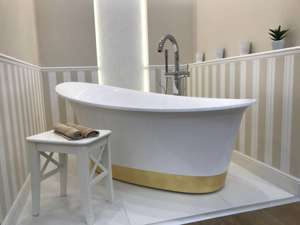 Wanna wolnostojąca Ravon Wisteria 160x70x67 cm, limited, biały połysk z metalizowanym pasem